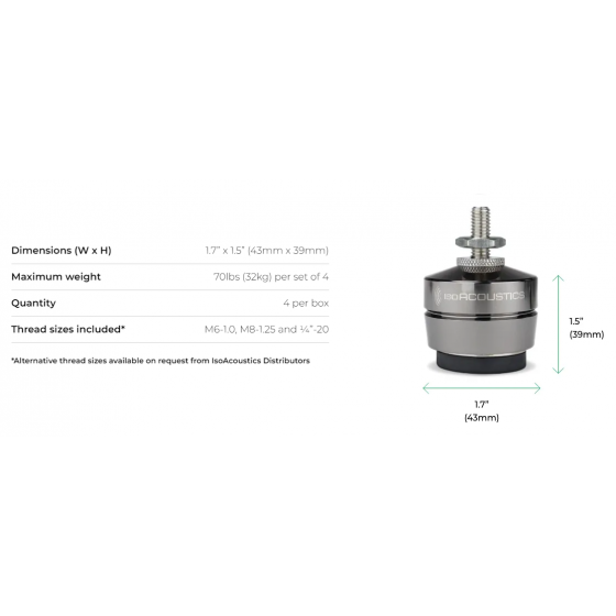 GAIA系列專為室內落地式喇叭設計,沿用IsoAcoustics一貫的專利設計,利用特殊加工構造,在避免喇叭受到震盪或移動的同時,也達到更明顯的揚聲器隔離效果,減低支撐面內部反射使聲音明晰度和空間感更佳。